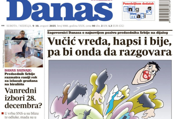 List Danas na naslovnoj strani u novom broju objavio je karikaturu na kojoj je prikazan predsednik Vučić sa odsečenom glavnom u eksploziji bombe.