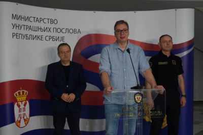 Predsednik Srbije Aleksandar Vučić obratio se iz prostorija Ministarstva unutrašnjih poslova u Palati Srbija. Prethodno je posetio komandni centar policije.