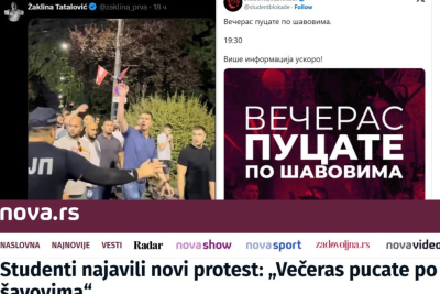 Na svom portalu, ovi mediji su preneli saopštenje grupe "Pravni u blokadi", koji su na društvenim mrežama objavili poziv na večerašnji protest pod sloganom "Večeras pucate po šavovima", a kojim jasno pozivaju na ubistvo brata predsednika Srbije, Andreja Vučića.