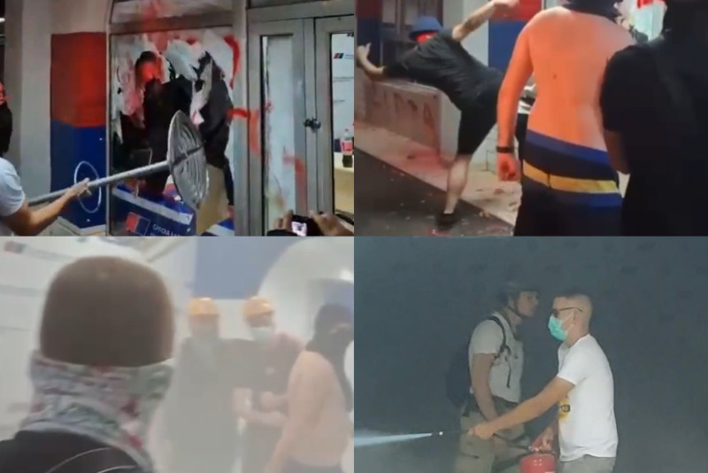 Oko 21 sat prostorije SNS su potpuno demolirane, kada su blokaderi su razlupali stakla, ušli unutra i izneli stolice.