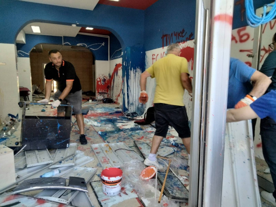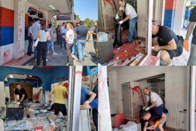 Građani Novog Sada okupili su se kako bi očistili prostorije SNS-a koje su demolirali blokaderi siledžije tokom prethodnih dana.