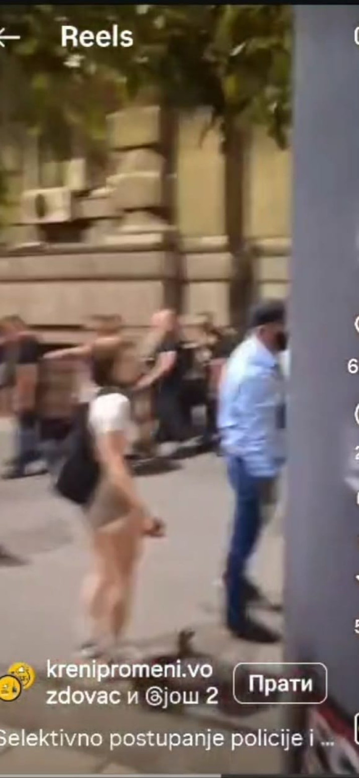 N.S., iz Obrenovca, članica pokreta Mladi Borba, je bila u grupi blokadera koji su kamenicama, flašama i bakljama napadali pripadnike policije koji su obezbeđivali zgradu Vlade Srbije u Nemanjinoj 11, kao sto se može i videti na snimku koji je na svom Instagram nalogu podelio pokret Kreni Promeni.