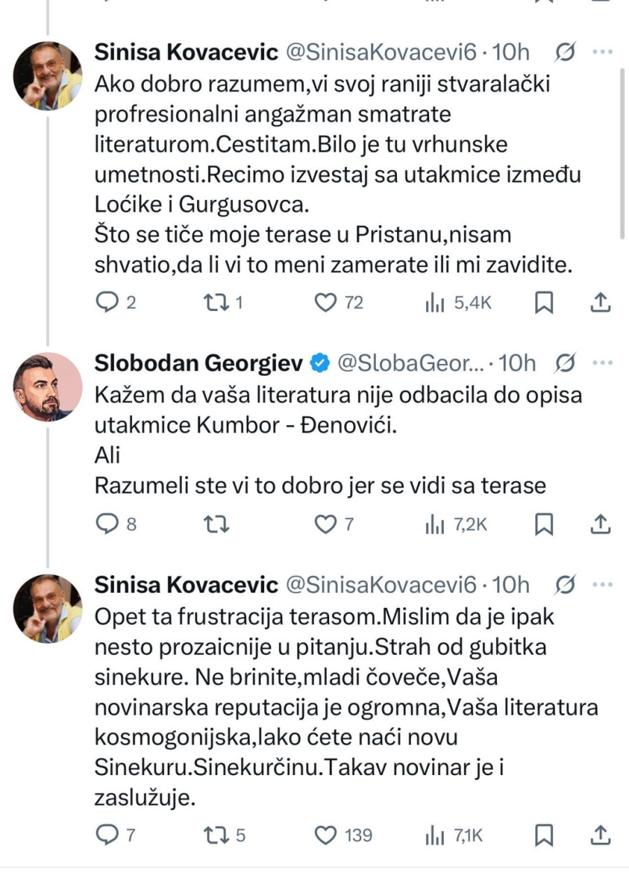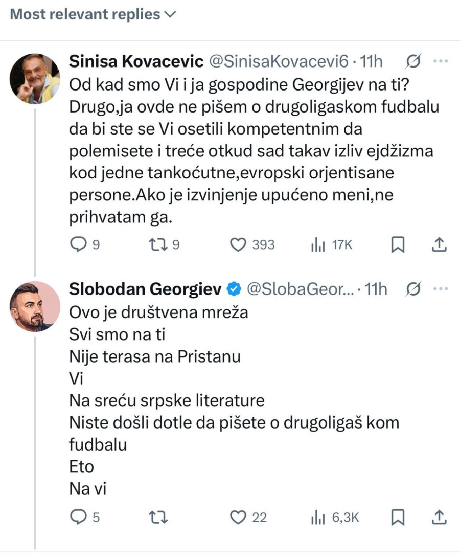 Pisac Siniša Kovačević i urednik na Novoj S Slobodan Georgiev sukoili su se na društvenoj mreži "Iks".