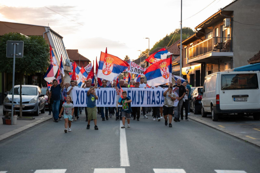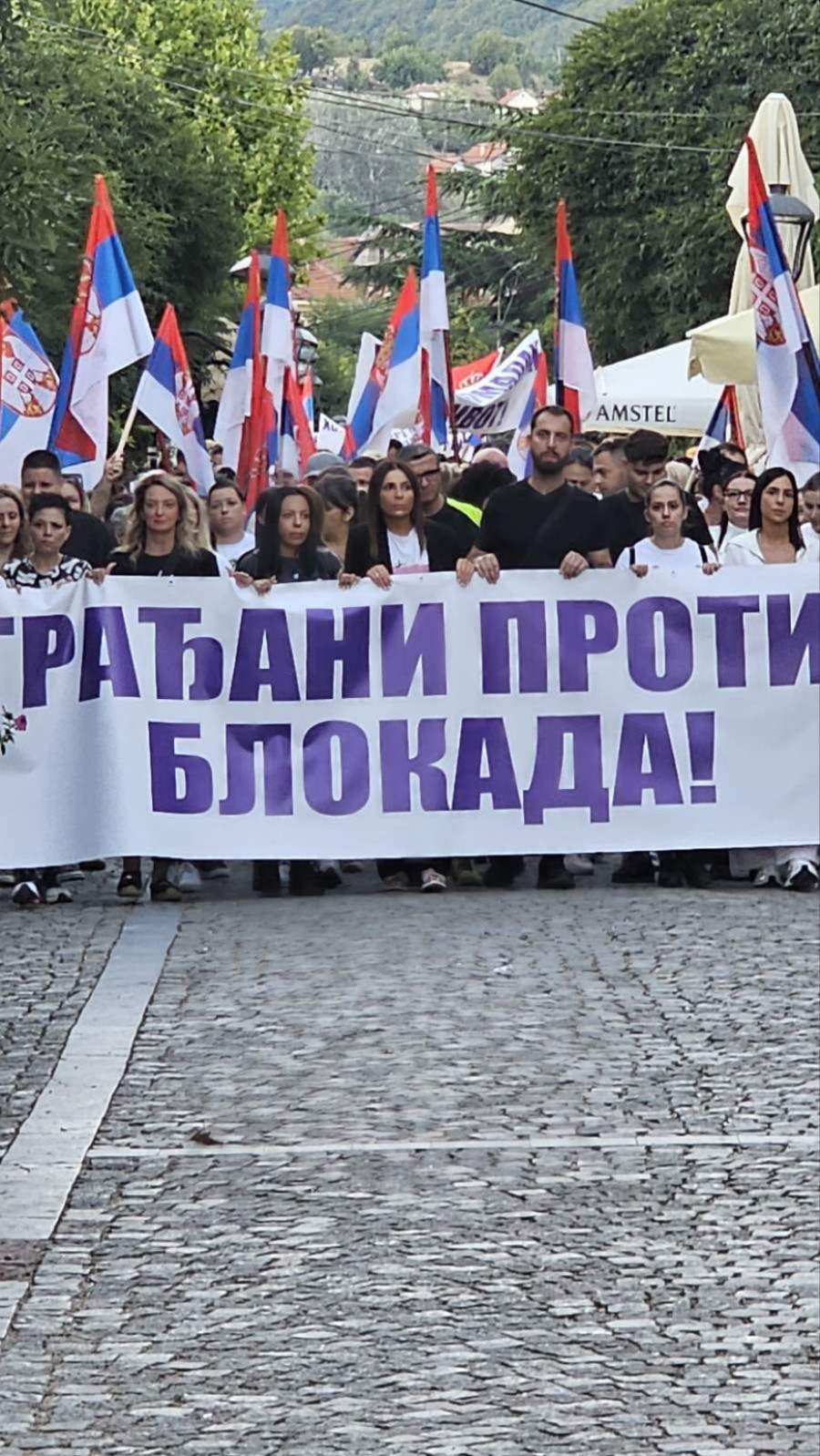 Građani su nosili zastave Srbije i brojne transparente, među kojima su "Građani protiv blokada", "Hoću moj život nazad", "Hoću moju Srbiju nazad", "Hoću da učim", "Ne damo Srbiju", "Hoću da se krećem slobodno".