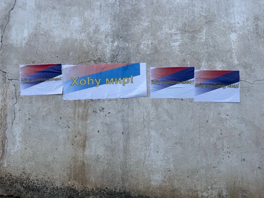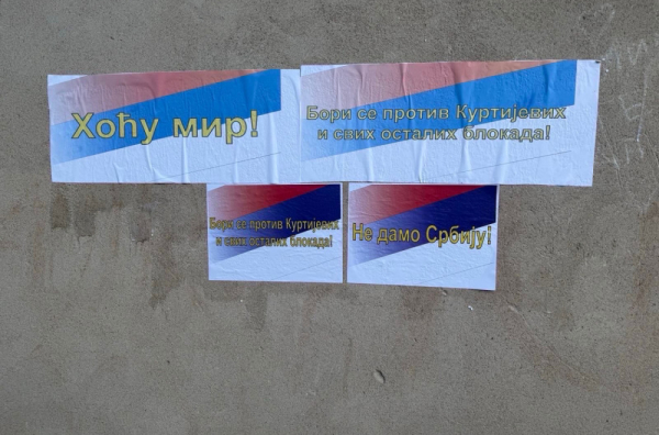 U srpskim sredinama širom Kosova i Metohije danas su se pojavili plakati u bojama srpske zastave, sa porukama "Hoću mir", "Hoću da se krećem slobodno", "Hoću da radim", "Bori se protiv Kurtijevih i svih ostalih blokada", pišu mediji.