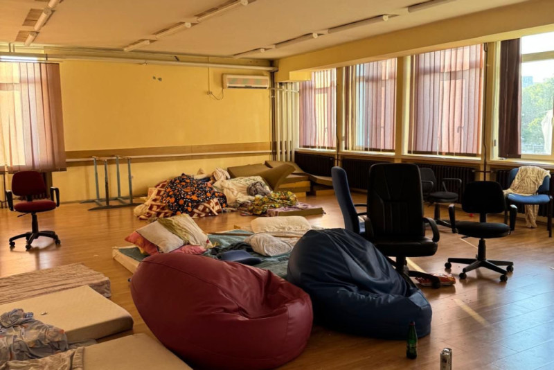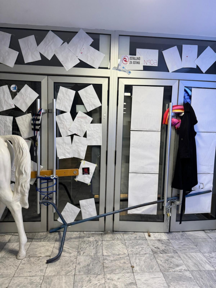 Zgrada novosadskog DIF-a u haosu: Blokaderi za sobom ostavili smeće, barikade, opuške... FOTO/VIDEO