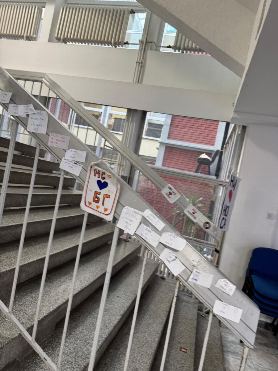 Osim toga jasno se vide improvizovane barikade, kojima su blokaderi sprečavali ljude da priđu zgradi fakulteta.
