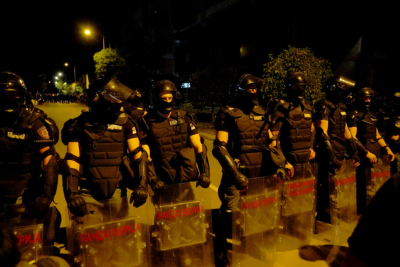 Nakon što su izdata dva jasna upozorenja i naređenja da se okupljeni razidju, a koja nisu ispoštovana, policija je pristupila intervenciji u skladu sa zakonom.