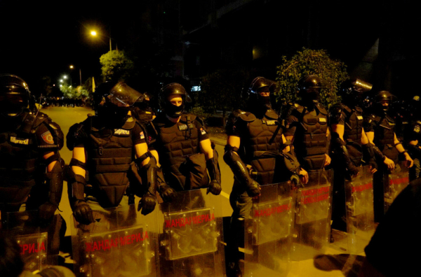 Prilikom potiskivanja i rasturanja mase, više lica je na policijske službenike bacilo pirotehničke naprave - topovske udare i dimne bombe, a gađali su policajce i različitim predmetima, kamenicama i ciglama.