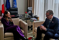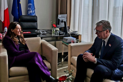 Predsednik Srbije Aleksandar Vučić sastao se danas pre početka sednice Saveta bezbednosti sa predsedavajućom Savetu bezbednosti UN i stalnom predstavnicom Malte pri UN Vanesom Frejzir u zgradi Ujedinjenih nacija u Njujorku.