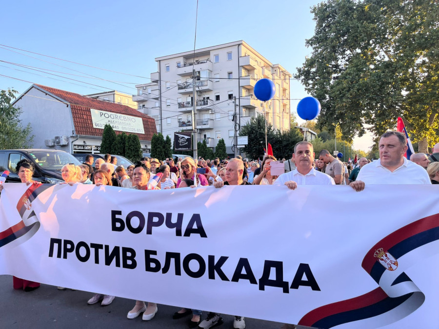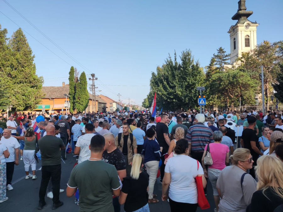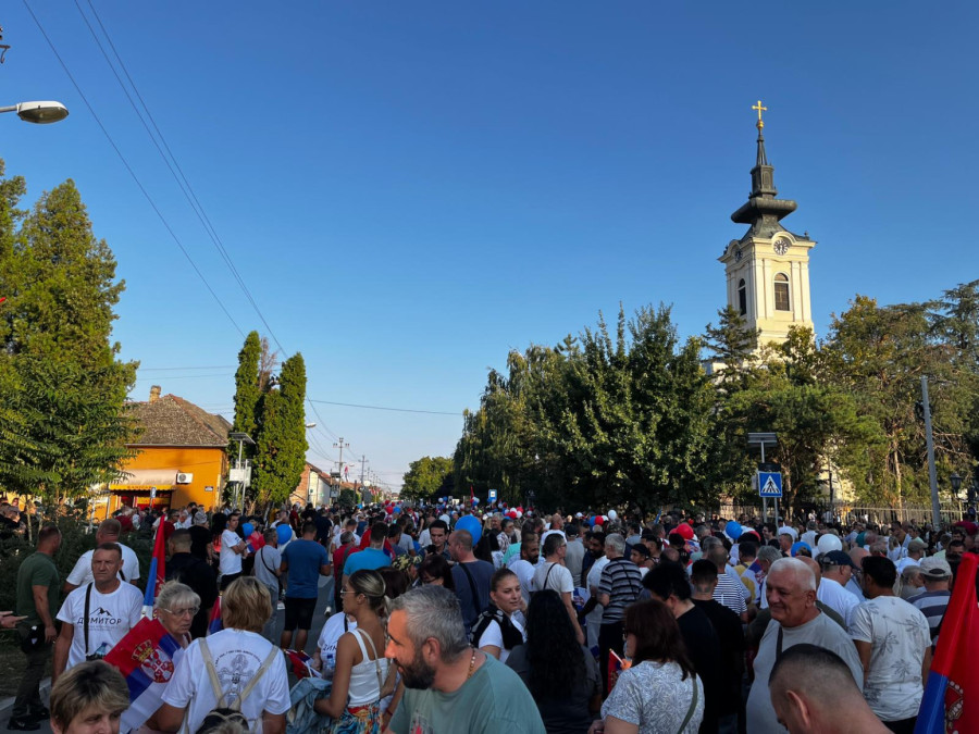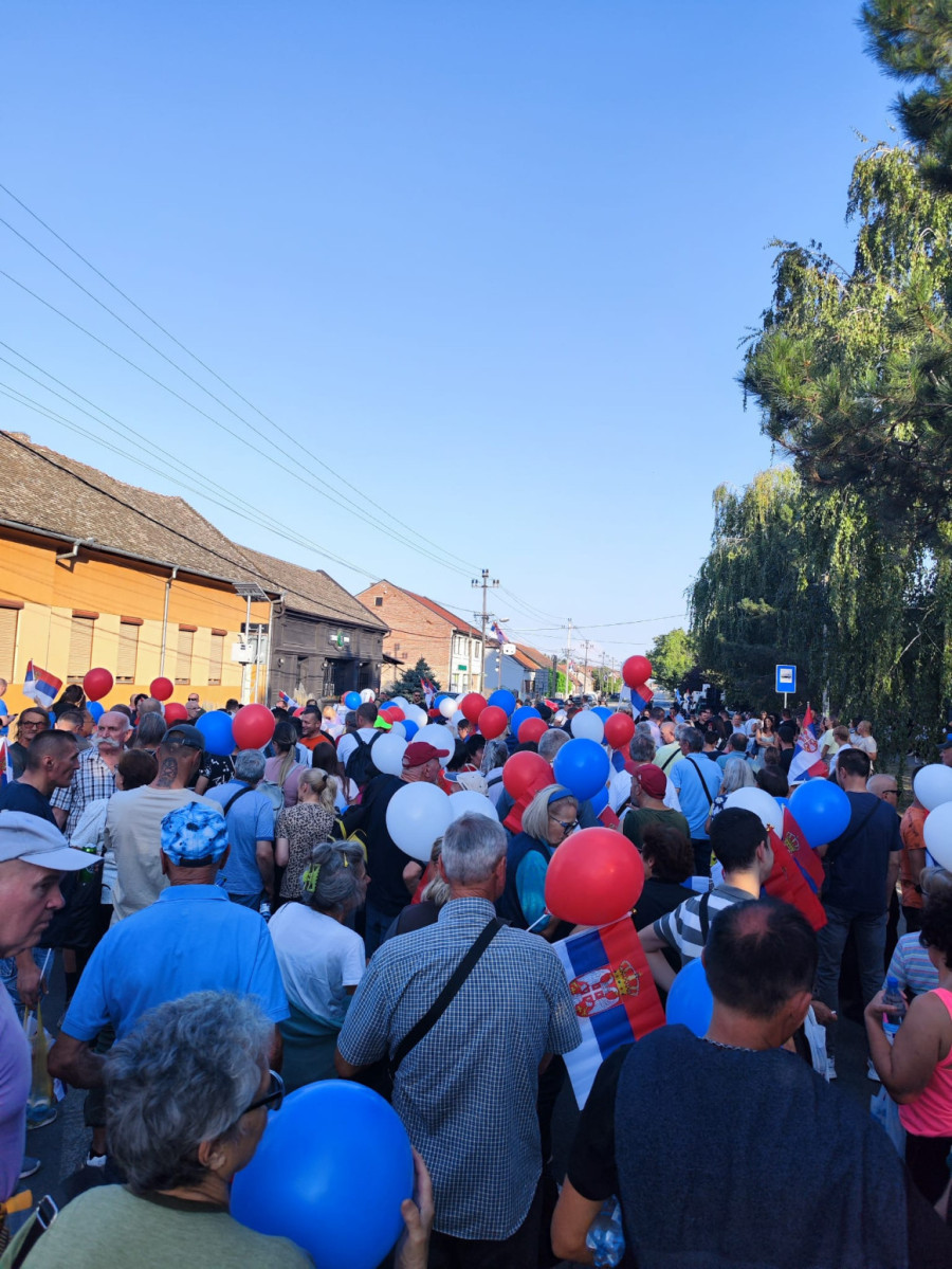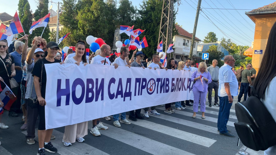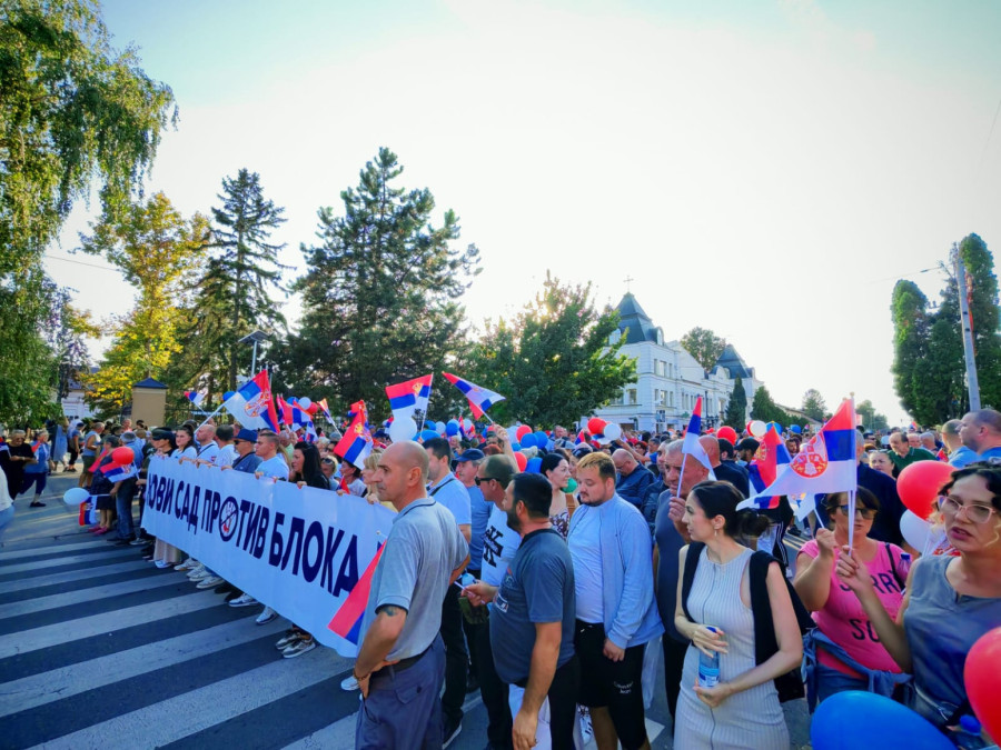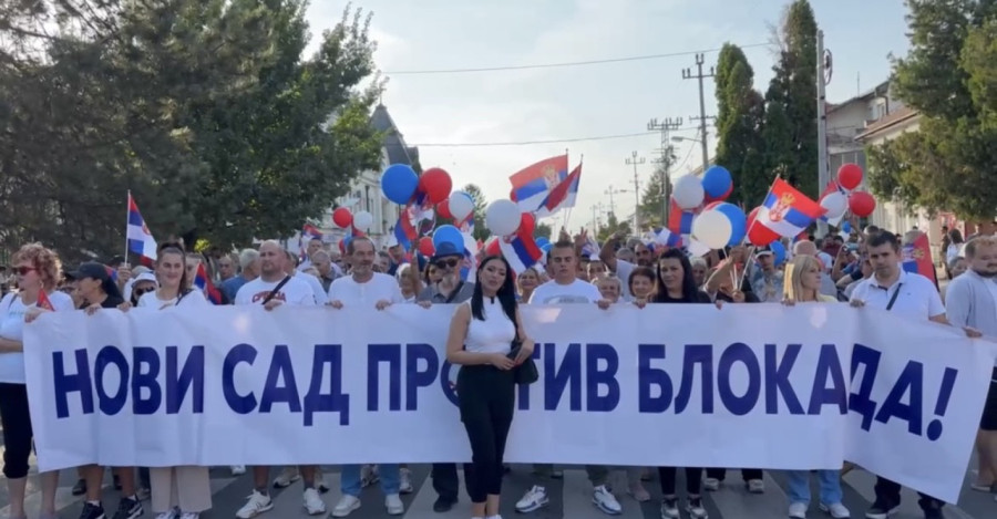 Veliki broj građana bio je na okupljanju u Kaću gde je na početku kolone bio istaknut baner "Novi Sad je protiv blokada", a prisustvovao je predsednik SNS Milos Vučević.