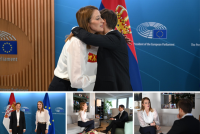 Brnabić će se tom prilikom sastati sa nekima od najvažnijih ljudi u Evropskoj uniji, a prvi susret započela je sa predsednicom Evropskog parlamenta Robertom Mecolom, koja se srdačno pozdravila sa našom predsednicom parlamenta.