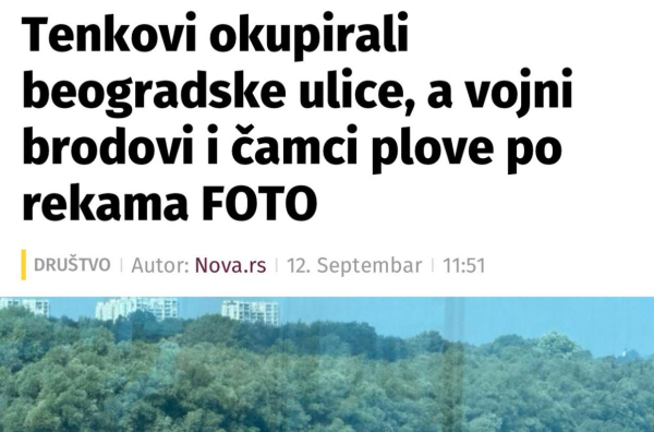 Tako u tekstu, Nova S piše da su "tenkovi okupirali beogradske ulice", dok "vojni brodovi i čamci plove po rekama".
