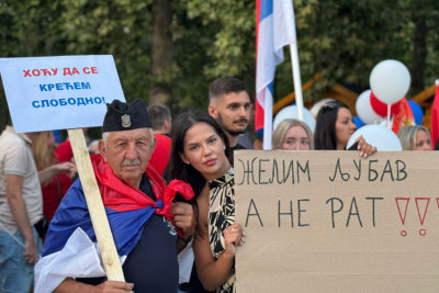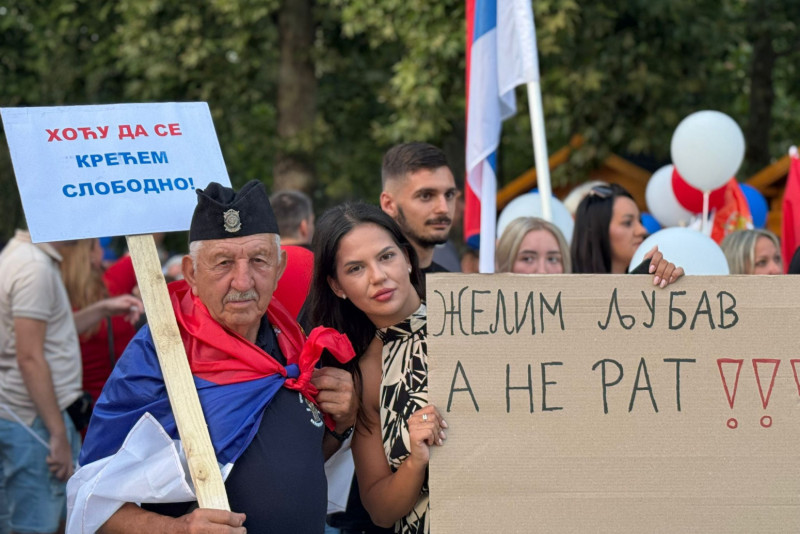 "Hoću da se krećem slobodno", "Želim ljubav, a ne rat", "Na damo Srbiju" – samo se neke od parole koje su se mogle videti.