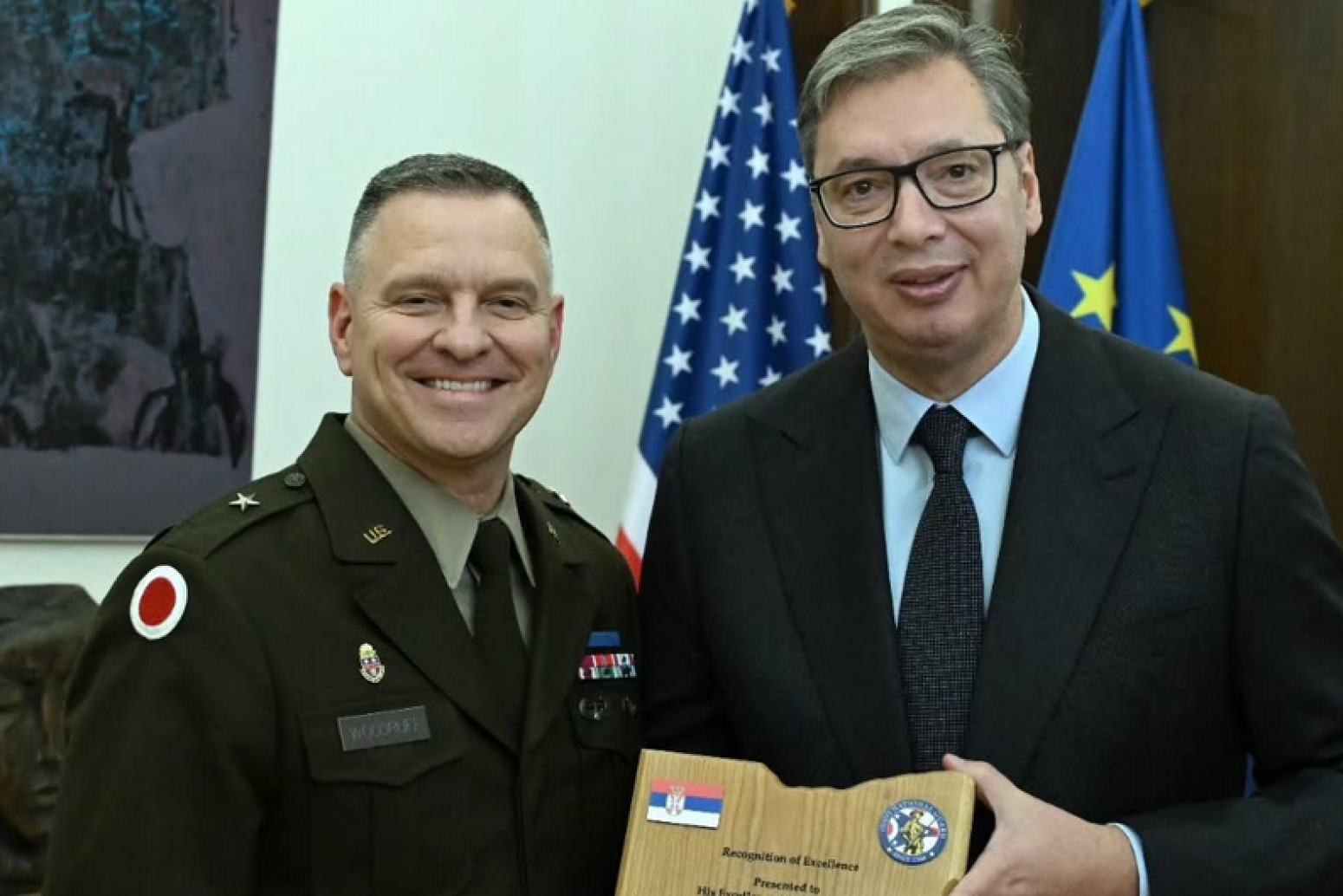 Predsednik Republike Srbije Aleksandar Vučić sastao se sa komandantom Nacionalne garde Ohaja, brigadnim generalom Metjuom Vudrafom.