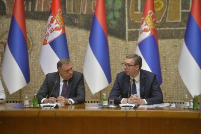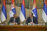 Predsednik Srbije Aleksandar Vučić i Milorad Dodik obratili su se javnosti sa sednice Saveta za saradnju Republike Srbije i Republike Srpske u proširenom sastavu.