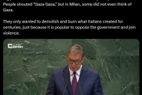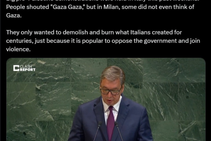 Vučić je rekao da deo demonstranata u Milanu nije ni pomislio na Gazu već je demolirao ono što je Italija stvarala vekovima, samo zato što je popularno protiviti se vlasi i pridružiti se nasilju.