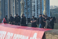 Naime, pomenuta grupa je koristila šablone i farbu za ispisivanje svojih poruka, a prilikom dolaska na tvrđavu, istakli su transparent na engleskom jeziku, verovatno sa ciljem da se dodvore svojim sponzorima, navodi NS Uživo.