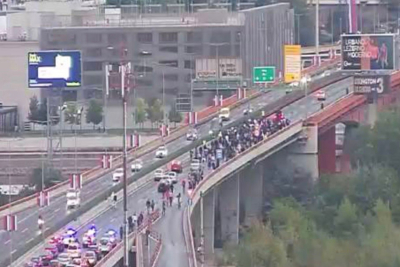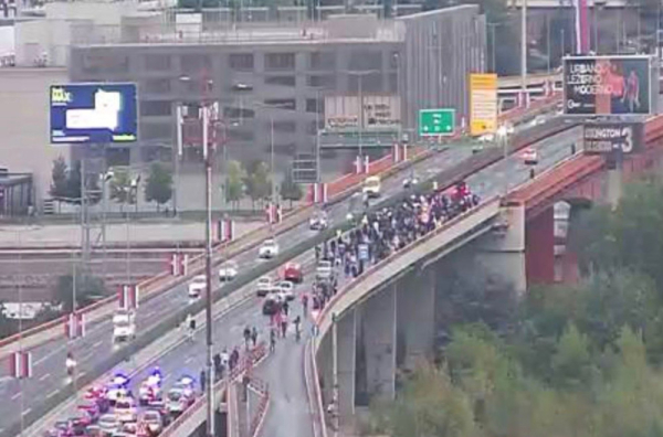 Grupa od oko 50 blokadera izazvala je saobraćajni kolaps na mostu Gazela, pišu mediji.