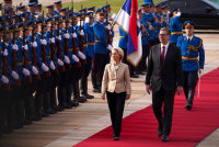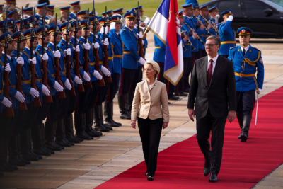 Podsetimo, Fon der Lajen doputovala je u zvaničnu posetu Beogradu, u okviru svoje zapadnobalkanske turneje, sinoć, a na aerodromu ju je dočekao predsednik Srbije Aleksandar Vučić.