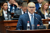 "Evo nama krajem novembra u dve opštine sigurno i možda jedna u Banatu. Ja u 2026. godini očekujem velike izbore, parlamentarne, a možda i predsedničke. Oni bi od njega da naprave žrtvu, jer je on mladost Srbije koji je pokazao na nepravdu u društvu, a onda ga zli režim kažnjava, a on se po svaku cenu kandiduje. Hoće da institucije rade. Vratite ih državi i građanima, nemojte da ih uzurpirate", rekao je Vučević i dodao: "Imaju taj mentalitet dodvoravanja. Oni stalno veruju u teorije da će neki strani faktor da poslaže sve. Oni koji se hvale da su na antifašističkim pozicijama, ustvari su na fašističke metode. Kao da moramo da imamo staratelja nekog. Blokaderska politika je politika bez lica. Ne smeju da uđu ni u kakvu ideologiju. Razočaraće tzv. patriote, videće kako će ovi ekstremno levi da vode. A tobože patriote iz idealizacije države prave kardinalne greške i ruše državu jer veruju da će oni koji dođu posle današnje Vlade i predsenika biti bolji. Već jednom ste se prevarili. Nemojte samo opet da se kajete i da niste znali. Tu su najveće prevare da neko uzme simbole srpske crkve i države i napada srpsku policiju da bi uveli Dinka Gruhonjića na fakultet. Gruhonjića koji brani da se crkva sagradi. To su prave prevare obojene revolucije", zaključio je on.