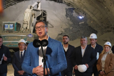 Predsednik Srbije Aleksandar Vučić obratio se medijima tokom obilaska radoba na tunelu "Iriški venac".