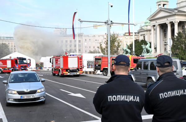 Oglasio se MUP: Muškarac ispalio više hitaca ispred Skupštine, pa namerno zapalio šator – jedna osoba ranjena