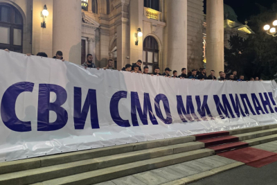 "Svi smo mi Milan"; Transparent u čast čoveka kog je upucao blokader ispred Skupštine FOTO/VIDEO
