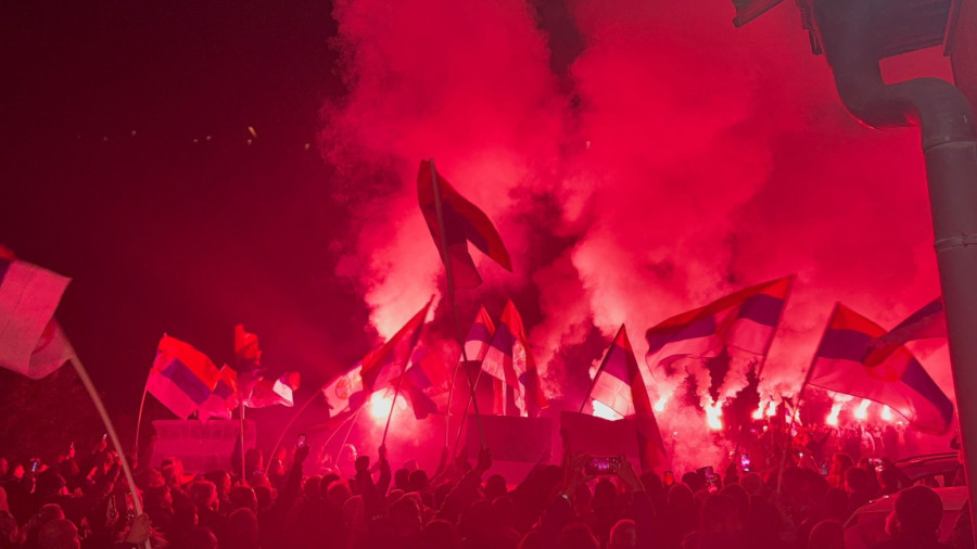Na dočeku bakljama pozdravili pešake sa Kosova i Metohije