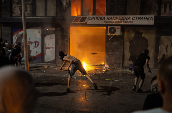 Prilikom razilaska okupljenih građana sa navedenog okupljanja, osumnjičeni Marko G. je prišao prostorijama navedene političke stranke i kamenicom gađao njen izlog, usled čega je došlo do oštećenja imovine veće vrednosti – izloga i unutrašnjosti prostorija.