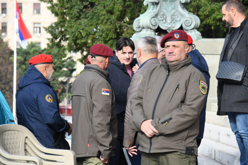 "Te pretnje sa društvenih mreža komentarišem kao sramne pretnje, upućene su pretnje smrću, upućene su pretnje sa rokom da do 20 časova, pet ratnih veterana i ja moramo da se sklonimo odavde, ili smo gotovi. Odmah ću da poručim nećemo se skloniti, ne bojimo se mi nikakvih pretnji, ne bojimo se nikakvih spoljnih ni unutrašnjih neprijatelja Srbije. Mi se borimo za Srbiju. Bojimo se samo Boga, i najviše volimo Srbiju", dodao je.