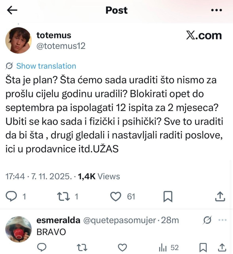 Nezadovoljni studenti ističu da blokaderi ne nude ništa novo – ono što su radili prošle godine sada planiraju da ponove, i opet će izgubiti godinu. Drugi podsećaju da su studenti već pali na samofinansiranje i izgubili budžete, pitajući se da li je ova odluka uopšte racionalna.