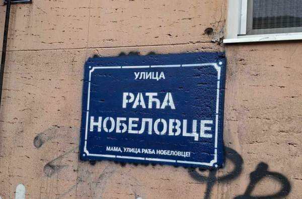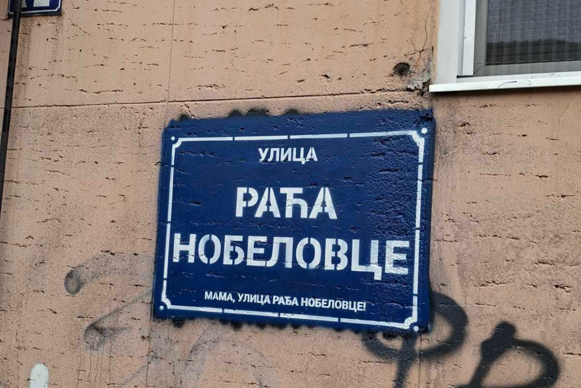 U ulici Kneginje Zorke osvanuo je grafit sa natpisom "Ulica raća nobelovce", preneli su mediji.