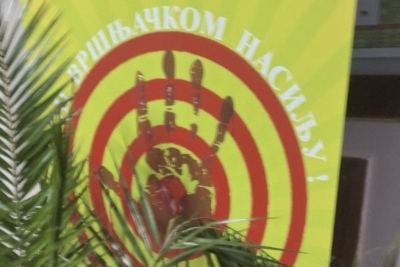 Kako pišu mediji, birače je dočekla krvava šaka, simbol blokadera i obojene revolucije koja je pokušana u Srbiji.