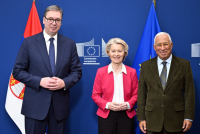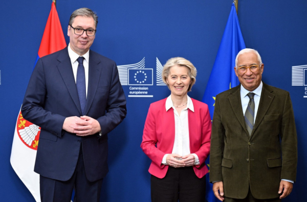 "Voleo bih da sam čuo njegovu reakciju po nekim drugim pitanjima, ali nisam. Mogao bih da budem ciničan i dobijam lake poene, ali neću. Predložio sam nešto što je mudro. Ako gledate samo sebe, a komšiji ne ide najbolje... Govorio sam to iz racionalnih razloga. Prvo skočite, pa recite hop. Mislim da je to najbolje rešenje", rekao je Vučić u obraćanju novinarima u Briselu, nakon sastanka sa predsednicom Evropske komisije Ursulom fon der Lajen i predsednikom Evropskog saveta Antoniom Koštom.