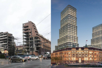 Na jednoj slici je Generalštab onakav kakav je trenutno, a na drugoj slici je planirani kompleks čija izgradnja je zalaganjem blokadera obustavljena, prenose mediji.