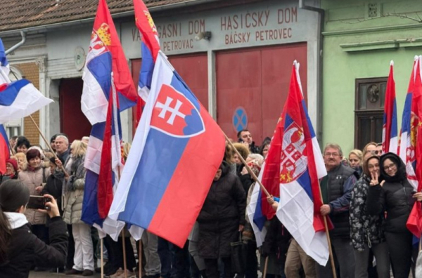 Veliki broj građana se okupio na ulicama Bačkog Petrovca, sa srpskim i slovačkim zastavama, kako bi dočekali oba predsednika.