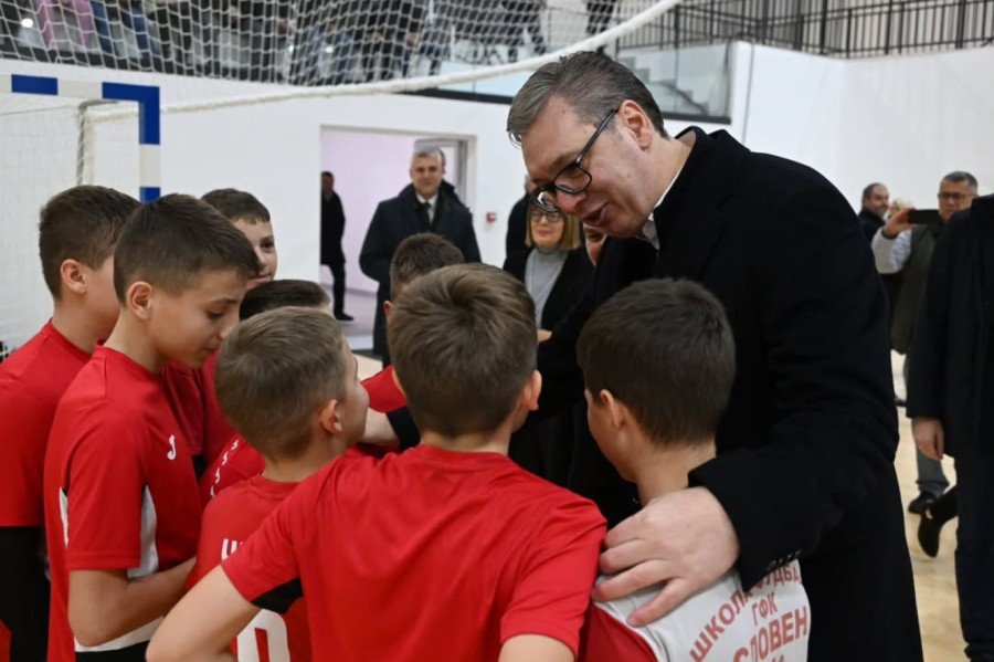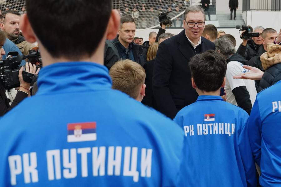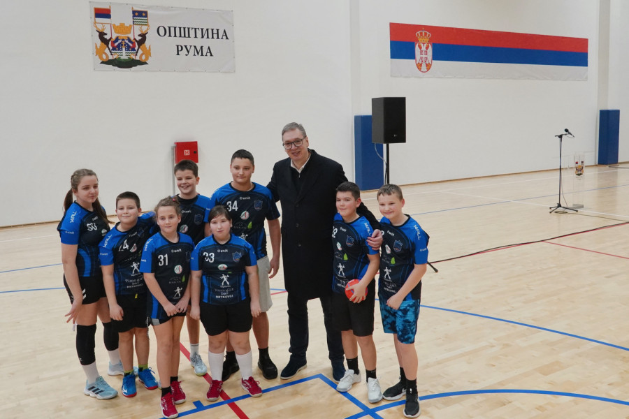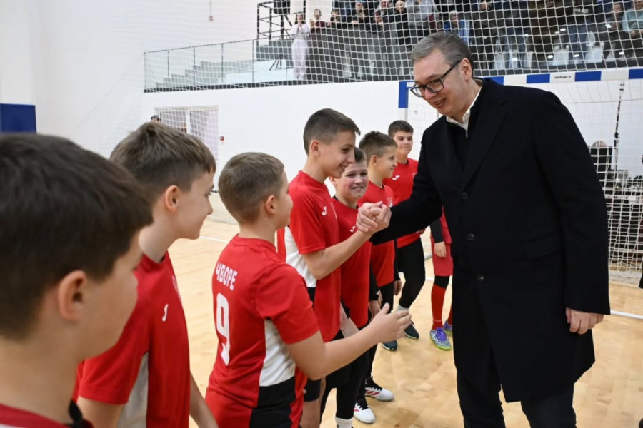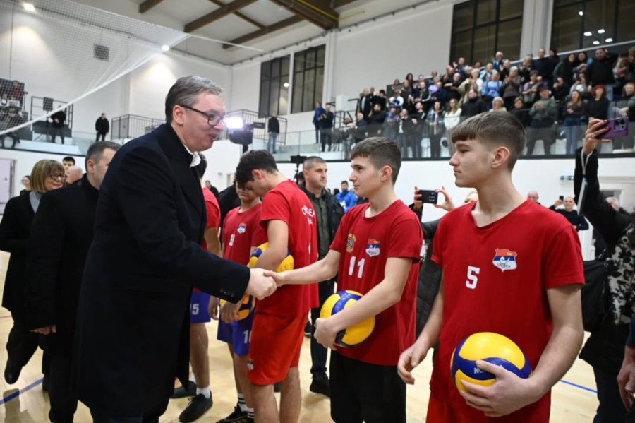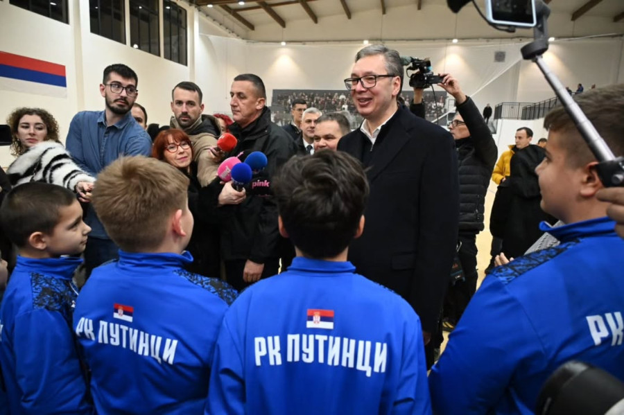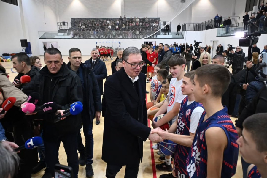 Predsednik Srbije Aleksandar Vučić prisustvovao je večeras otvaranju nove sportske hale u Putincima, kod Rume, čija je izgradnja počela u decembru 2023. godine.