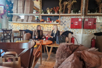 Tužiteljka Jovana Komnenović (desno na fotografiji), jedan od kandidata za člana Visokog saveta tužilaštva ispred osnovnih javnih tužilaštava snimljena je kako sedi u lokalu odmah pored glasačkog mesta beogradske apelacije u Katanićevoj ulici.