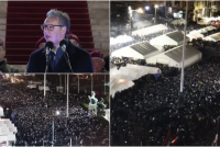 "Srećan sam što sam ovde sa vama i znam da vam je hladno. Sad je toliko toplo da nije za porediti sa februarom i martom, hvala vam na ovom veličanstvenom dočeku, pre svega, hvala Miloše, svim studentima i mladim ljudima koji su pokrenuli jednu najlepšu ideju i branili je do kraja. To je ideja postojanja suverene i nezavisne Srbije u kojoj pristojni ljudi ne žele nikoga da muče, već samo žele da žive normalne života. Pre godinu dana mi smo pomislili da taj veliki put, koji je postojao protiv mene, da je to rezultat nezadovoljstva zbog pada nadstrešnice. Trudili smo se da im ispunimo sve zahteve iako smo još u početku primetili mnogo nelogičnosti, što smo ih više ispunjavali, to su oni postojali sve bahatiji", rekao je Vučić