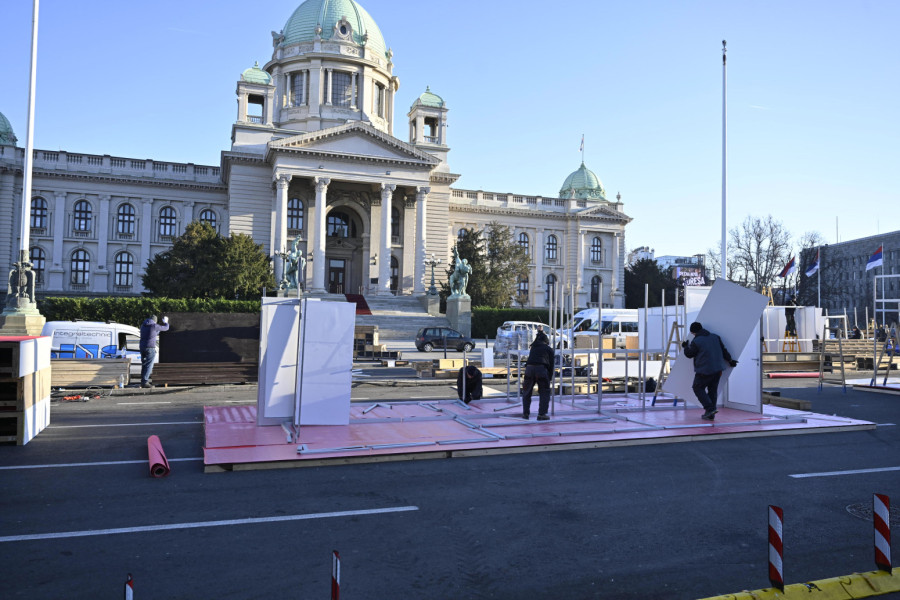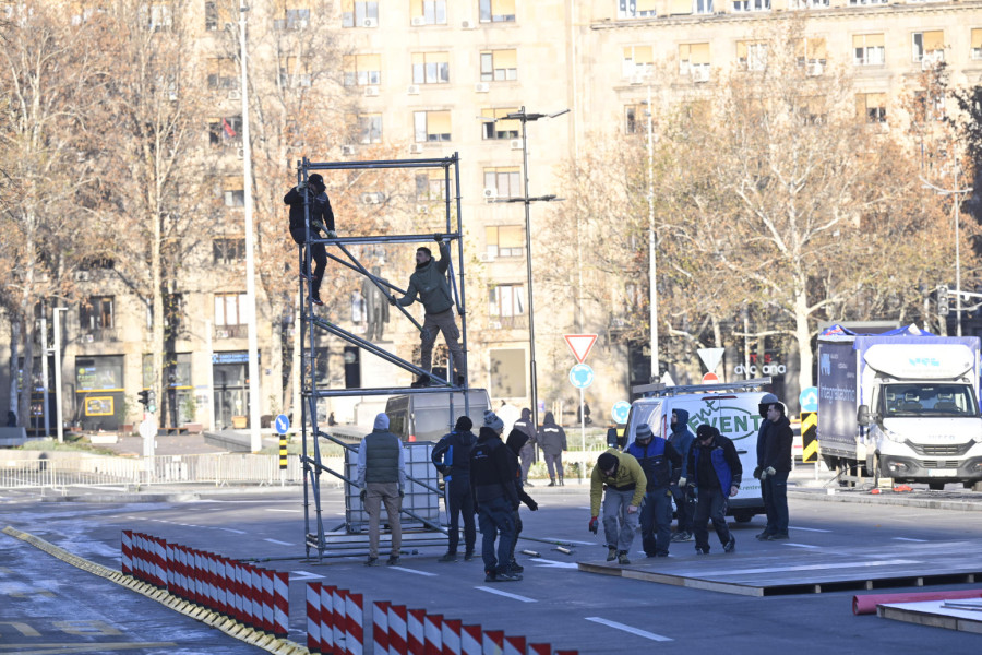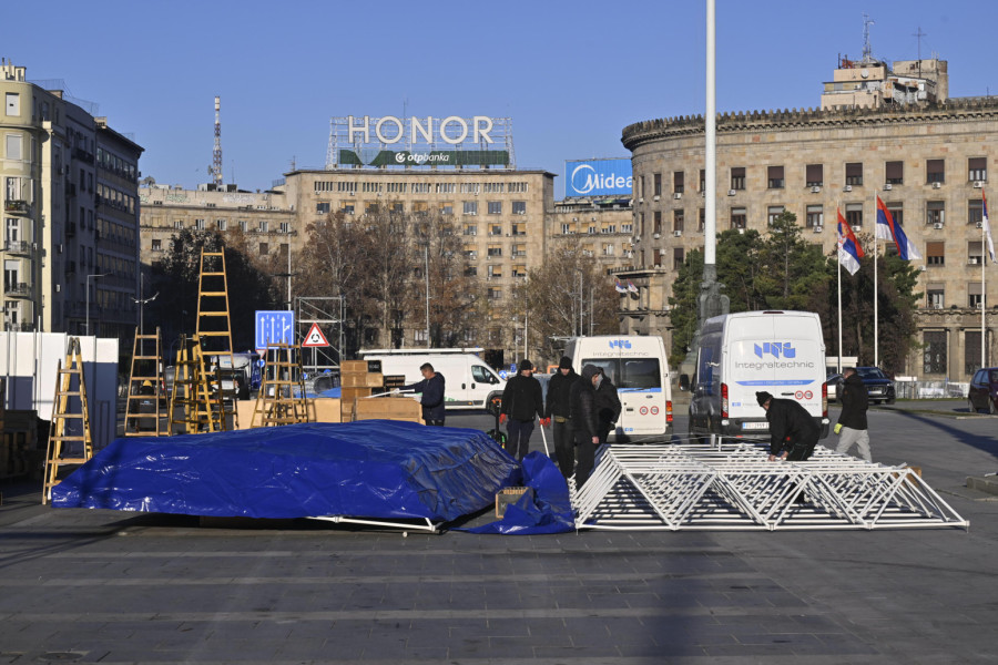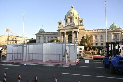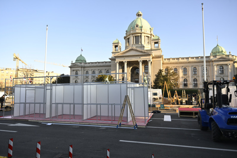Uklonjeni šatori ispred Skupštine; Postavljaju se objekti za Božićno selo FOTO