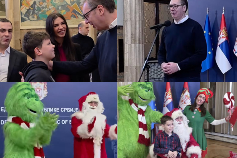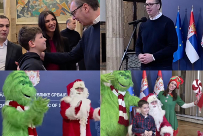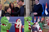 Nakon što je Vučić podelio paketiće deci, priređena je priredba na kojoj su se mališani družili zajedno sa Deda Mrazom i Grinčom.