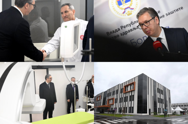 "Hvala svima što se danas ovde. Srećan sam što mogu sa vama da podelim trenutke radosti. Reč je o ozbiljnom projektu, ozbiljnoj bolnici, čestitam građanima Trebinja. Ovo je velika stvar za ovaj kraj. U današnjem svetu samo su 5 stvari od velikog značaja. To su vojska i odbrana, energija i energetika, hrana i voda, zdravstvo, kao i AI i moderne tehnologije. To su 5 suštinskih stvari za opstanak nacija i država", rekao je Vučić.