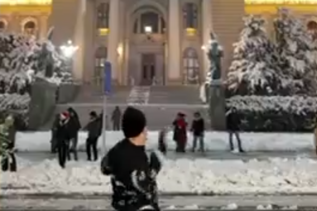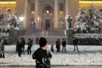 Na snimcima koji su se pojavili na društvenim mrežama, vidi se kako se okupljeni blokaderi međusobno gađaju grudvama, dok su u neposrednoj blizini bile mašine koje su čistile sneg sa kolovoza.