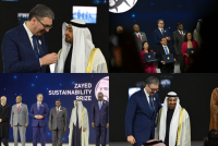 Predsednik Republike Srbije Aleksandar Vučić sastao se na svečanom otvaranju Nedelje održivosti 2026 u Abu Dabiju sa predsednikom Ujedinjenih Arapskih Emirata šeikom Mohamedom bin Zajedom.