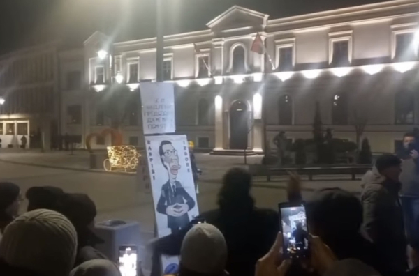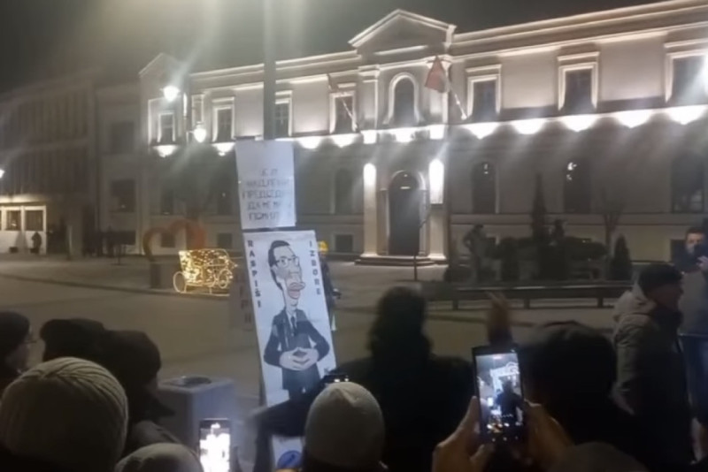 U Čačku je danas ispred gimnazije organizovan protest, a okupljeni su na protestu jajima gađali lik predsednika Srbije Aleksandra Vučića nacrtanog na kartonu.