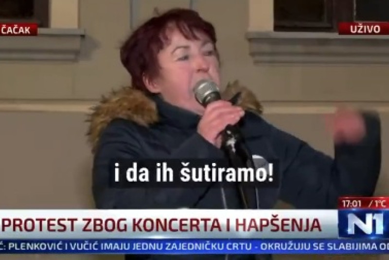 "I nije tačno da nije dovoljno da budu na robiji. Ma ima bre da ih jašemo, i da ih šutiramo! U katran da ih valjamo i u perje. Sve su zaslužili. Nisu oni zaslužili da kao ljudi robijaju, jer je robija za ljude. Nisu oni ljudi. Mnogo veća kazna njih čeka", rekla je ona na blokadama u Čačku, prenose mediji.