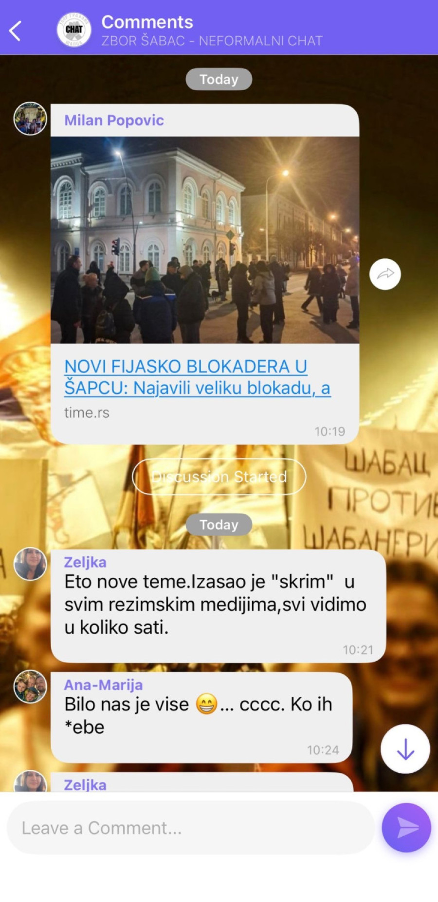 Naime, na društvenim mrežama se pojavila prepiska blokadera koji nisu prezali da udare jedni na druge.