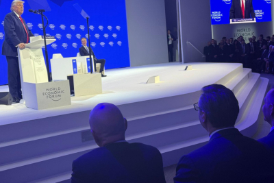 Predsednik Srbije Aleksandar Vučić pratio je obraćanje američkog predsednika Donalda Trampa u Davosu iz prvog reda.