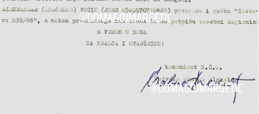 Ovo je dokument koji je juče objavio Domagoj Margetić, u kojem Aleksić navodno traži od logistike odreda da Aleksandar Vučić zaduži pušku "papovku".